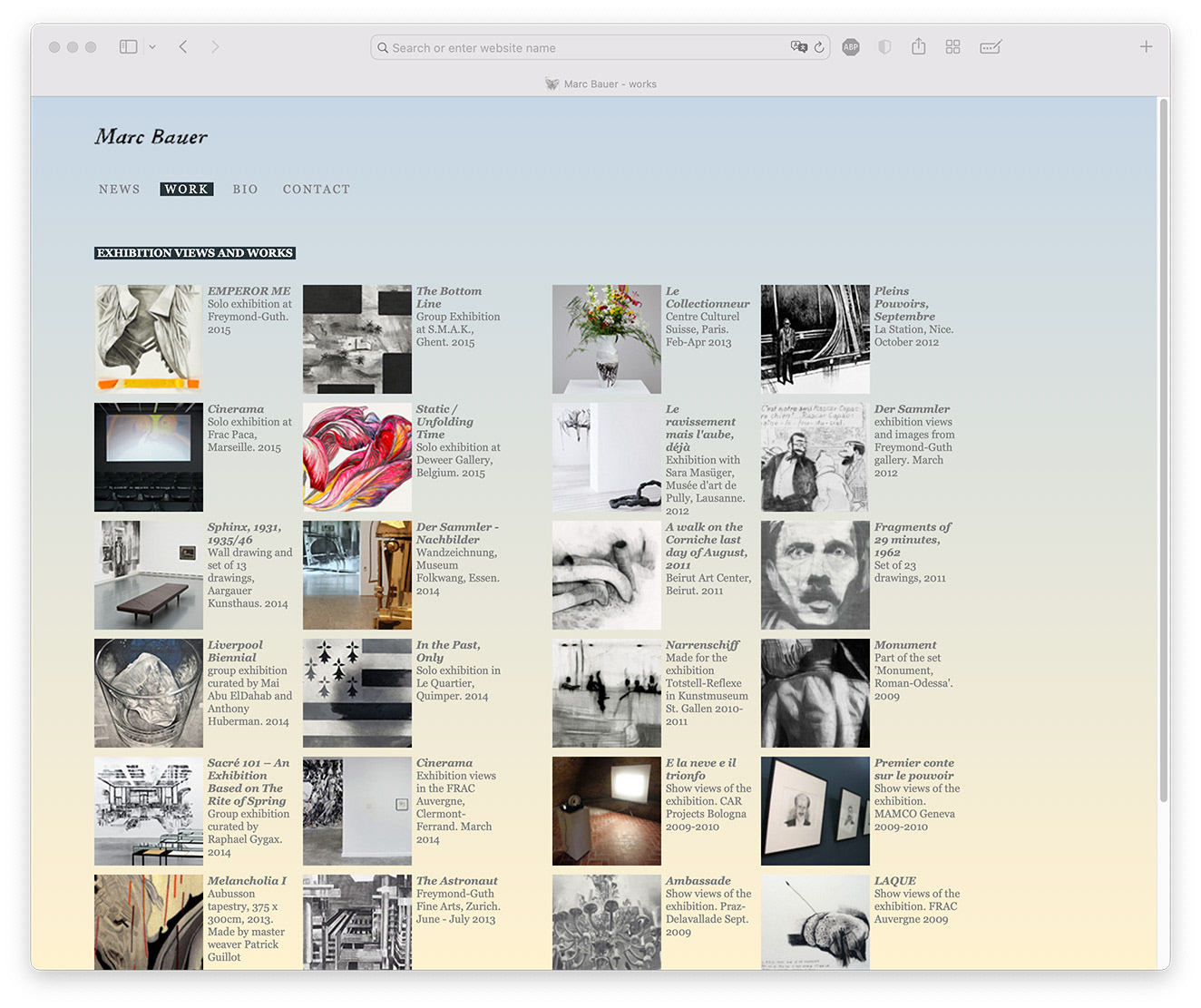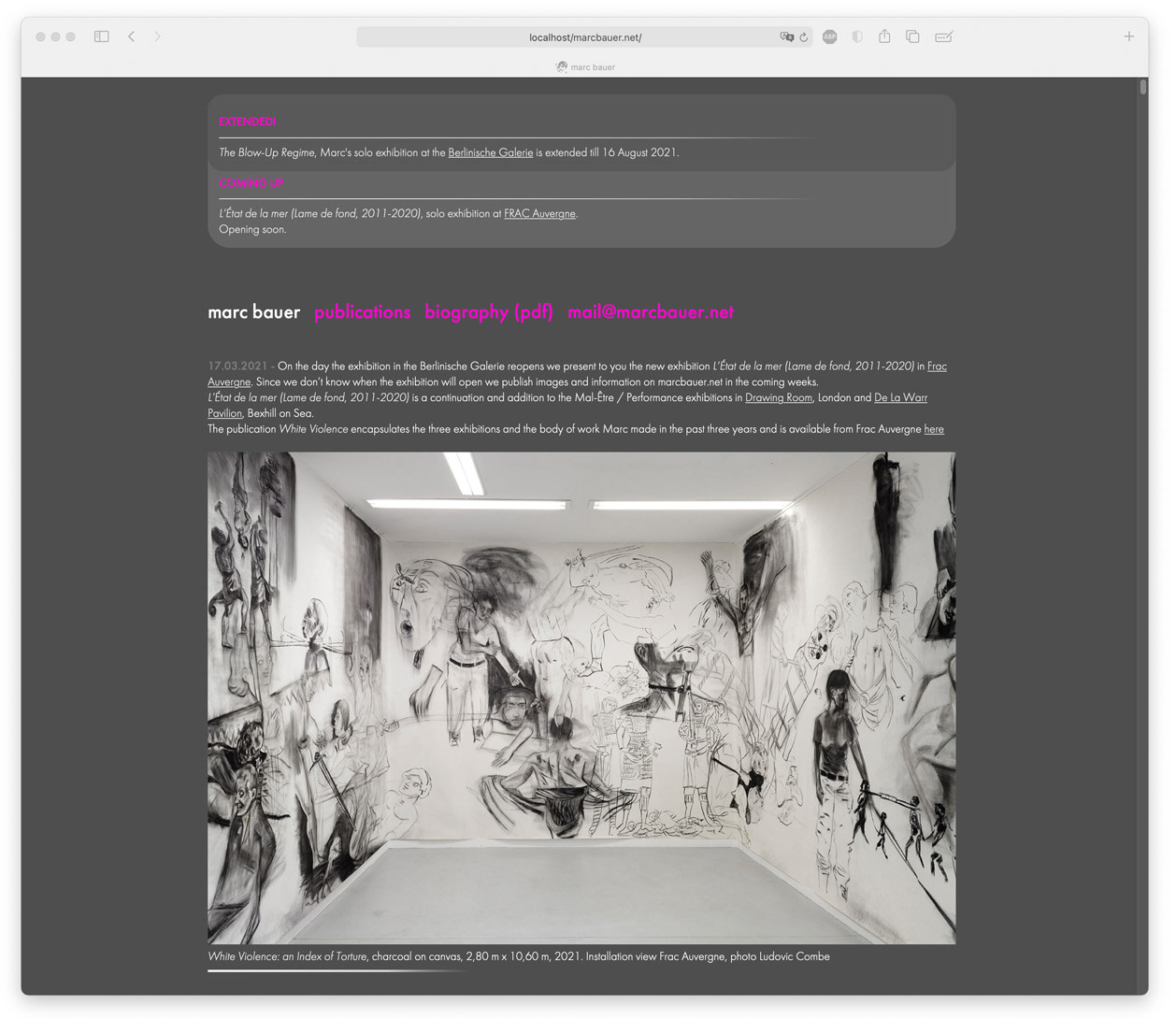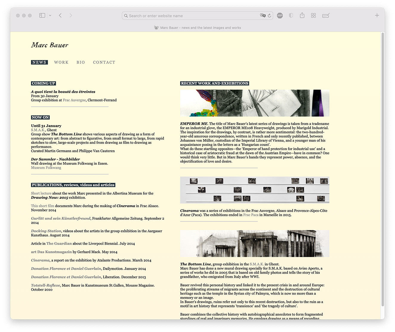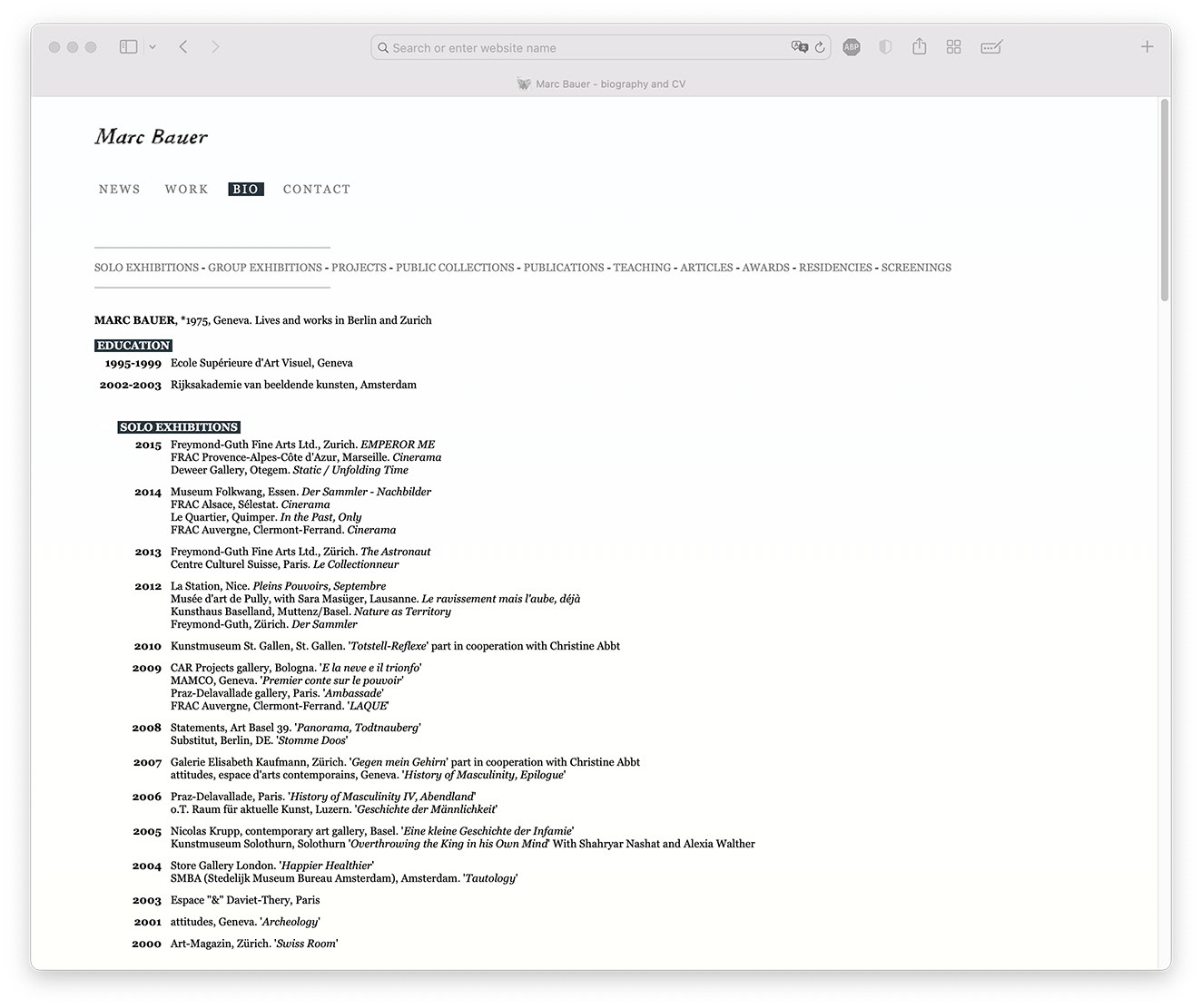 Since 2003 this website underwent several redesigns, keeping up with and reflecting the development of Marc Bauer’s career.